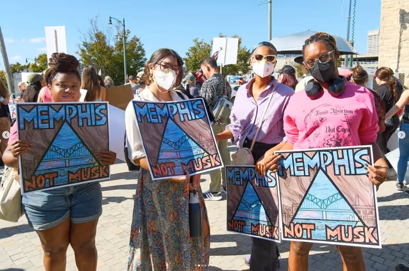 Manifestantes en Memphis protestan contra la IA y el despliegue de la Guardia Nacional en un evento de septiembre de 2025. Foto cortesía de Media Justice y EOS_NOLA.