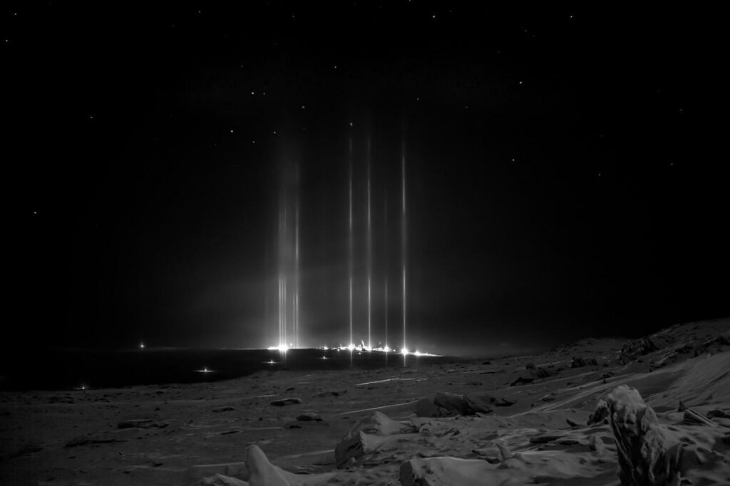 En una época en la que la cooperación mundial está en declive, el mismo aparato de seguridad que en su día imaginó el control climático como una ventaja estratégica secreta en el Ártico se enfrenta ahora a un mundo en el que cada intervención en la atmósfera es tanto un experimento técnico como una señal geopolítica. En una región que ya no es el amortiguador helado de un mundo bipolar, sino el nuevo Salvaje Oeste de uno multipolar, los intereses superpuestos del mundo convergen en el lugar donde chocan muchas de sus fronteras disputadas. El deshielo del mar ha destrozado el Paso del Noroeste como un laberinto mítico filosofado por Michel Serres en los lugares contemporáneos de extracción y acceso.[60] El paisaje ártico en transformación ya está facilitando rutas marítimas más rápidas, ampliando las perforaciones petrolíferas y atrayendo a prospectores en busca de minerales raros. En este paisaje ya militarizado e industrializado, han surgido propuestas radicales en respuesta a la urgente necesidad de reducir las temperaturas del Ártico, incluidas intervenciones controvertidas como el blanqueamiento de las nubes marinas, la inyección de aerosoles estratosféricos y la dispersión de microperlas de sílice. Pero cualquier intento de remediar el hielo ártico reordenaría inevitablemente las nuevas rutas comerciales, el acceso a los recursos y el alcance militar: un experimento geofísico global sin control. A pesar de que los modelos de alta resolución han sustituido a los mapas con monstruos en sus bordes, los pasajes laberínticos siguen siendo oscuros y esquivos mientras navegamos hacia el futuro. La Guerra Caliente no solo está llegando. Ya está aquí.