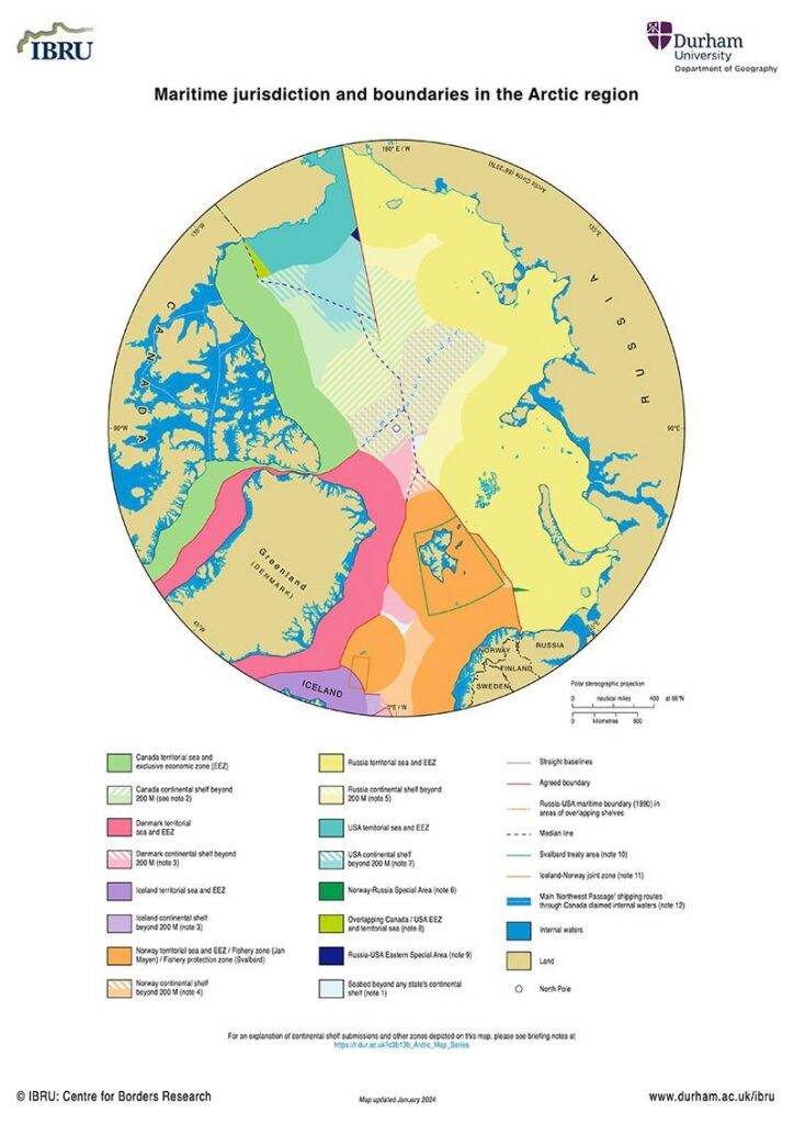 - Para un seguimiento actualizado de las reclamaciones y solicitudes en litigio, véase la «Arctic Map Series» (Serie de mapas del Ártico) creada por el IBRU: Centre for Borders Research (Centro de Investigación sobre Fronteras) de la Universidad de Durham →.