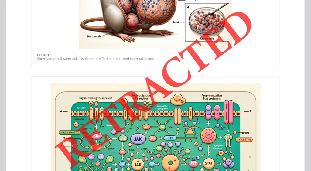 Tras su publicación, se plantearon dudas sobre la naturaleza de las figuras generadas por IA. El artículo no cumple con los estándares de rigor editorial y científico de Frontiers in Cell and Developmental Biology, por lo que ha sido retirado.