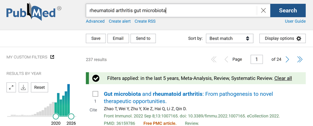 Por ejemplo, al introducir la frase de búsqueda «artritis reumatoide microbiota intestinal» en el agregador PubMed y restringir la búsqueda a los últimos cinco años, se obtienen 558 resultados, de los cuales 237 son revisiones o metaanálisis. El interés de las editoriales (y las empresas farmacéuticas) ha provocado una saturación de la literatura especializada sobre el tema, de modo que casi la mitad del material publicado son descripciones redundantes de la otra mitad, los datos reales.